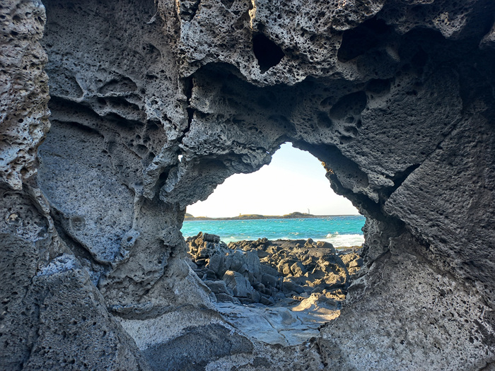 제주도 아름다운 바다를 배경으로 있는 창꼼바위 정말 이색적인 제주도 핫플레이스입니다.