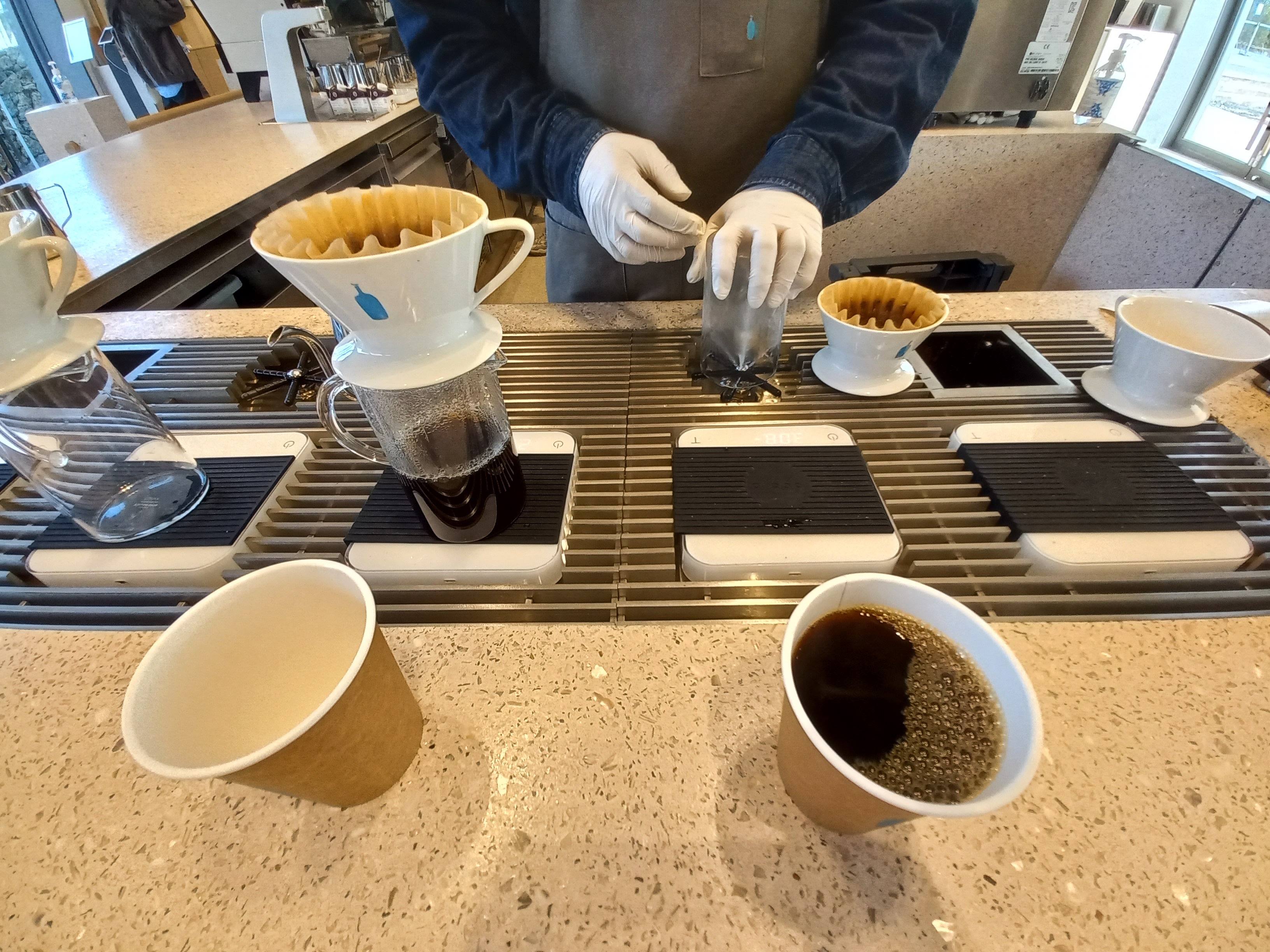 얼마전에 생긴 블루보틀 또한 제주도민들 뿐만 아니라 제주도를 찾아오는 관광객들로 늘 북새통이 되었다. ' 역시 블루보틀 커피야! '하는 분들의 입소문에 한적한 곳에서 영업을 해도 알아서 찾아 온다.