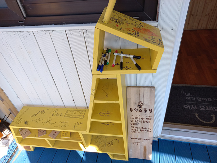 해안도로를 드라이브하다 우연히 발견한 작은 가게.. 카페인가? 음식점인가? 궁금해 가까이 가보니 무인 소품샵이었다. 한적한 마을에 무인 소품샵이라니 조금은 의아했다.