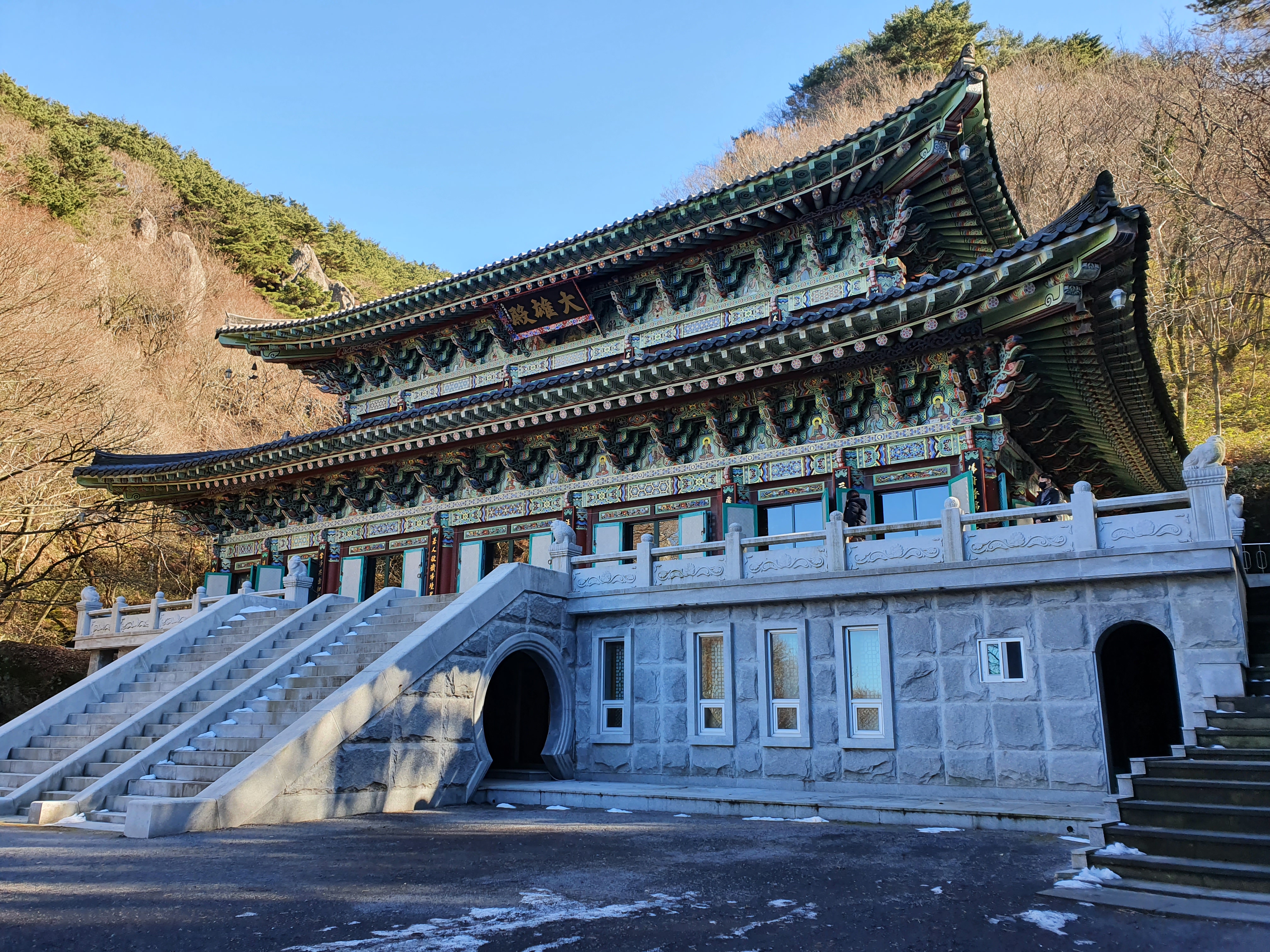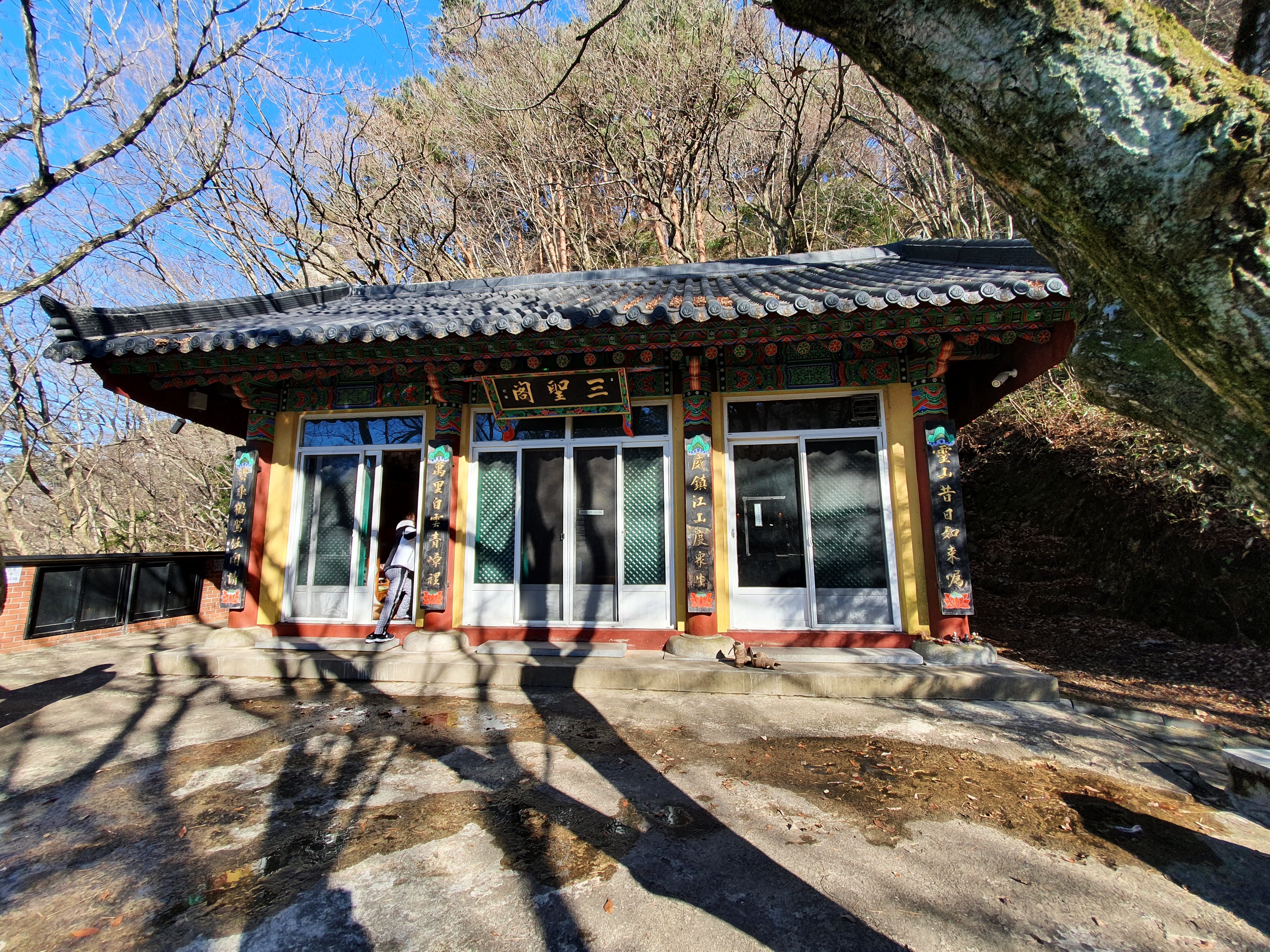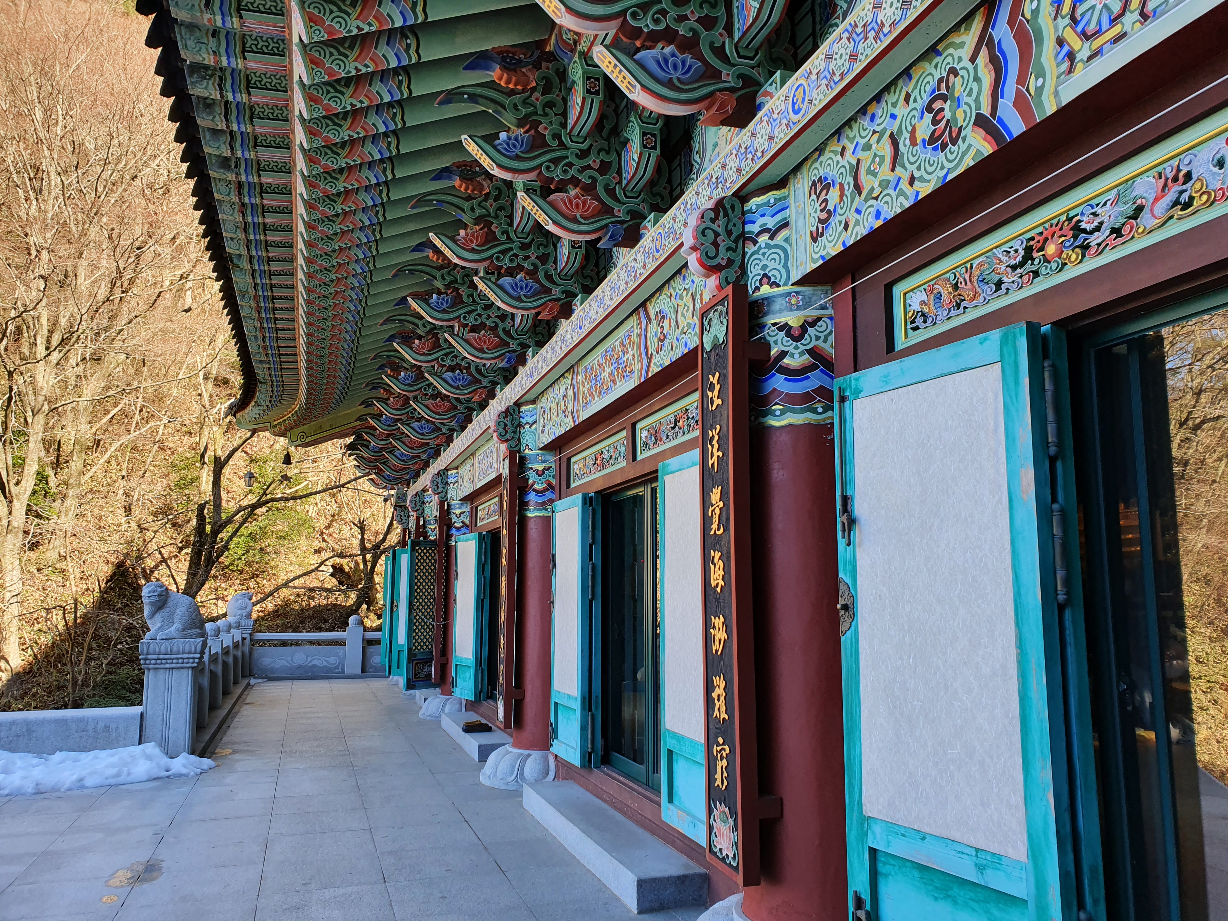 나무가 많아 바람이 불어도 생각보다 춥지 않아 좋고 하늘이 푸르러서 너무 좋았던 사찰 나들이였습니다.