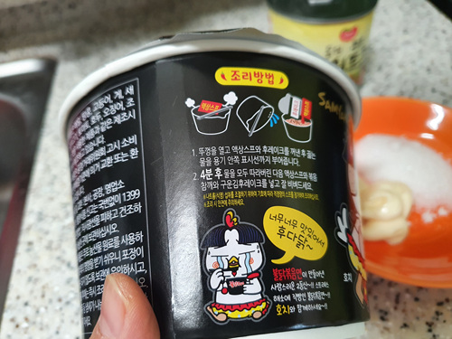 마트에 가니 불닭 볶음면이 품절되어 전 컵라면으로 대체해 봤습니다. 맛은 뭐 거의 비슷하니까.....