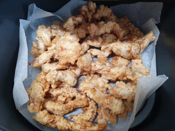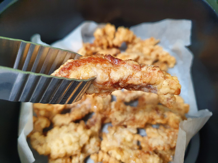남은 고기는 에어프라이어에 160도 온도에 약 10분간 데우면 처음처럼 바삭하게 먹을 수 있습니다.