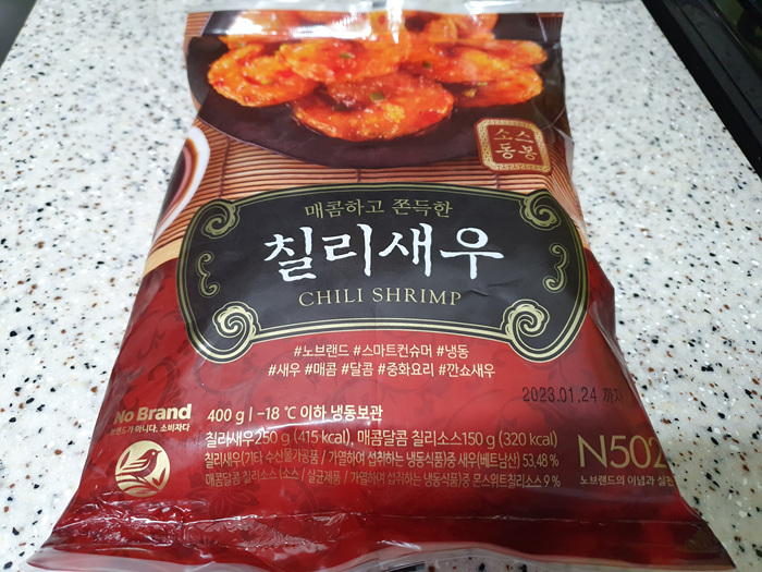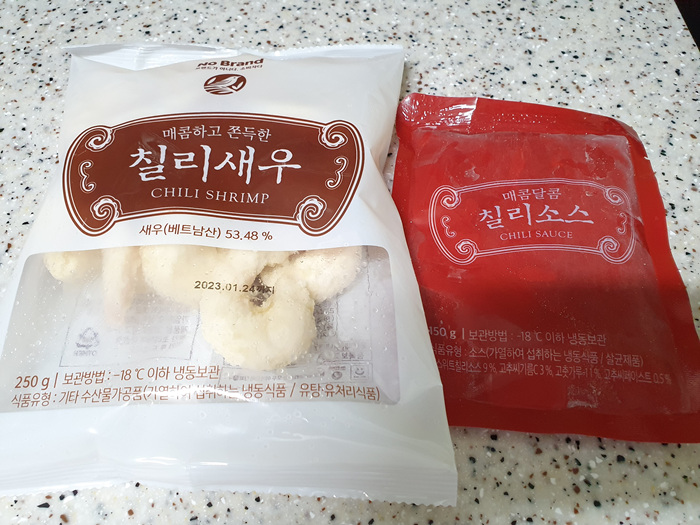 냉장고에 보니 맥주 안주로 손색이 없는 칠리새우가 있어 정말 괜찮겠다는 생각에 당장 꺼냈답니다. 이마트 노브랜드 코너에 가면 착한 가격에 칠리새우를 만날 수 있어요. 전 간혹 이마트 가면 노브랜드 코너는 필수로 들린답니다.