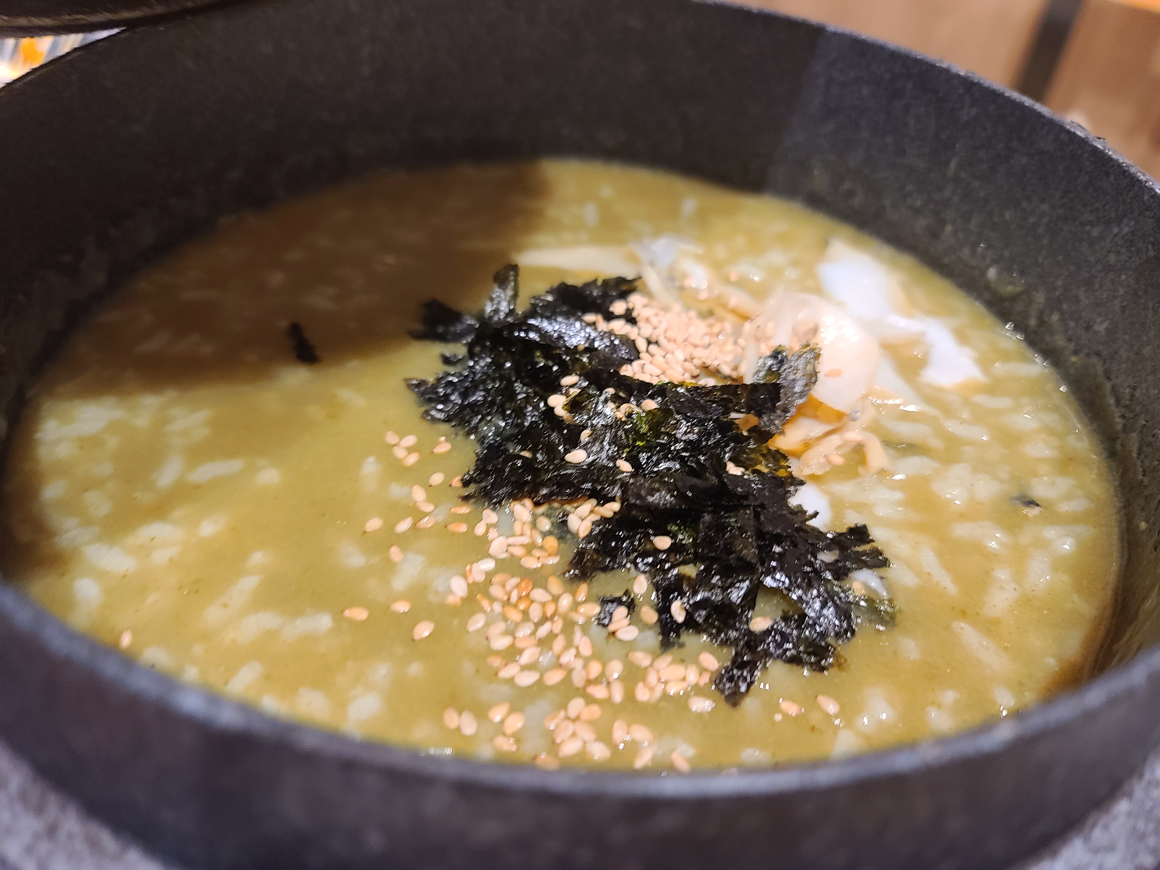 우란 대개를 먹으면서 라면과 밥도 주문했다. 이러니 배가 부르다 못해 터질 지경이지~