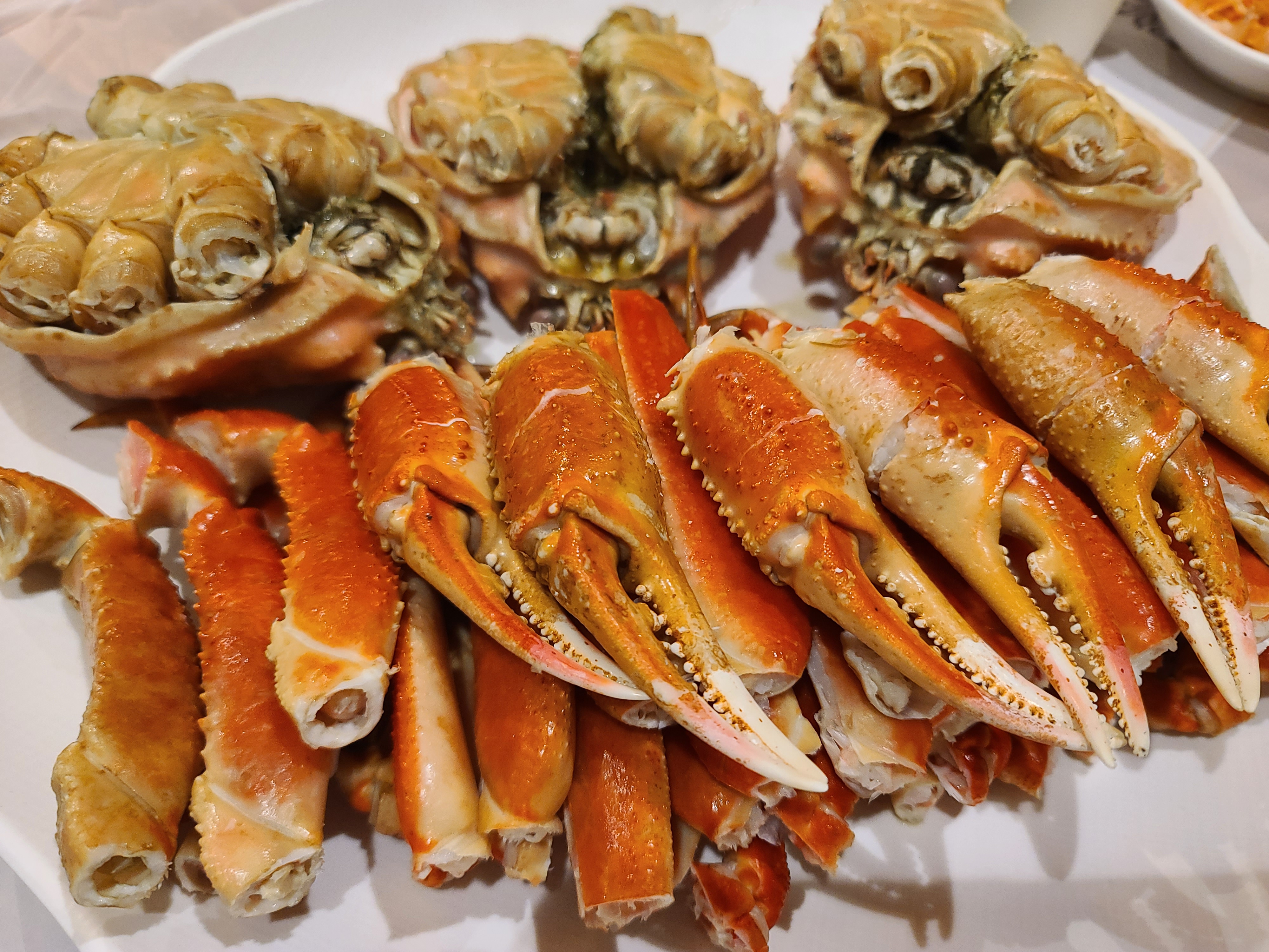 드디어 기다리던 대게가 나왔다. 이렇게 푸짐하게 2 접시다. 6명이라 5키로 주문했는데 다 먹지도 못하고 포장해 갈 정도였다. 리얼 👍