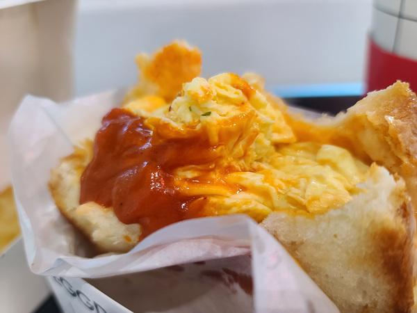 달걀이 많이 들어가 조금 느끼할 것 같아 매운 소스를 뿌렸더니 의외로 더 맛있게 느껴졌다. 양도 푸짐하게 느껴져 든든한 식사가 되는 듯 했다.