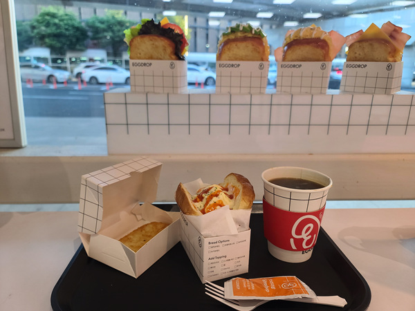 에그샌드위치 세트는 아메리카노와 함께 나온다. 키오스크로 주문하면 뭘 그리 추가선택 사항이 많은지 나이 드신 분들은 쉽게 접하기가 어려울 듯 하다.