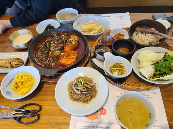 반찬 대부분은 그렇게 간이 세지 않아 개인적으로 입에 맞았다. 밥은 톳을 넣은 밥이 나오고 쌈도 여러가지 나온다. 쌈장 또한 다양하게 나오기 때문에 골라 먹을 수 있다.