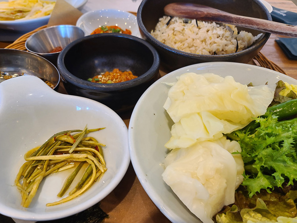 반찬 대부분은 그렇게 간이 세지 않아 개인적으로 입에 맞았다. 밥은 톳을 넣은 밥이 나오고 쌈도 여러가지 나온다. 쌈장 또한 다양하게 나오기 때문에 골라 먹을 수 있다.
