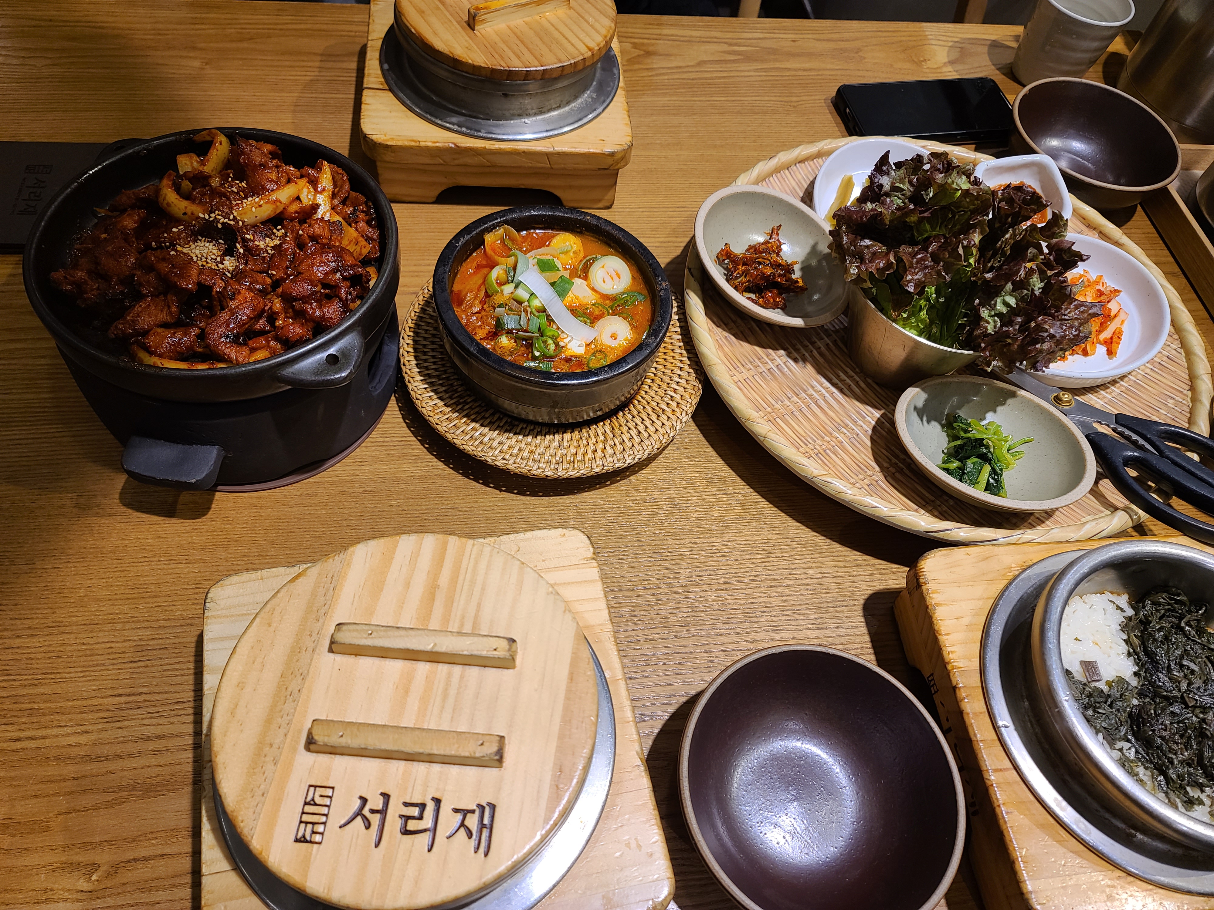우린 매운 고추장 불고기와 김치찌개를 주문했다. 이렇게 주문하면 솥밥이 나오는데 곤드레밥으로 변경하면 1,500원 추가하면 된다. 찬도 정갈하게 잘 나오고 무엇보다도 주메뉴가 정말 맛있다.