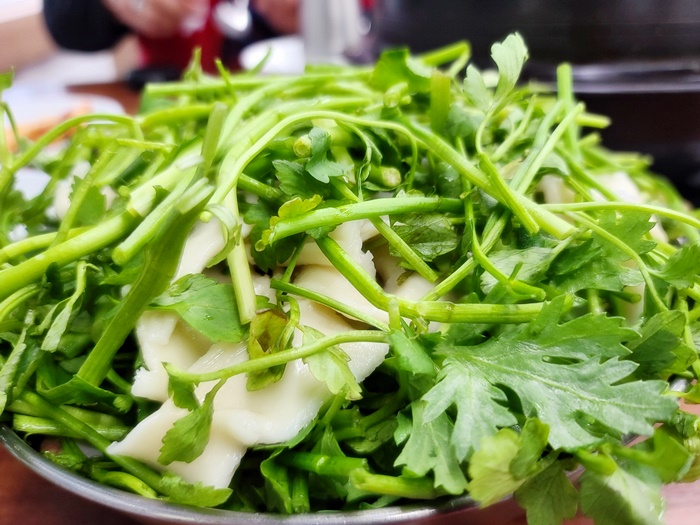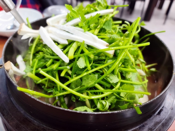 요즘 비싸다는 미나리가 넉넉해서 좋았는데요. 채소가 모자라 더 추가하고 싶으면 추가요금을 내서 드시면 되세요. 공짜 아님 주의요!