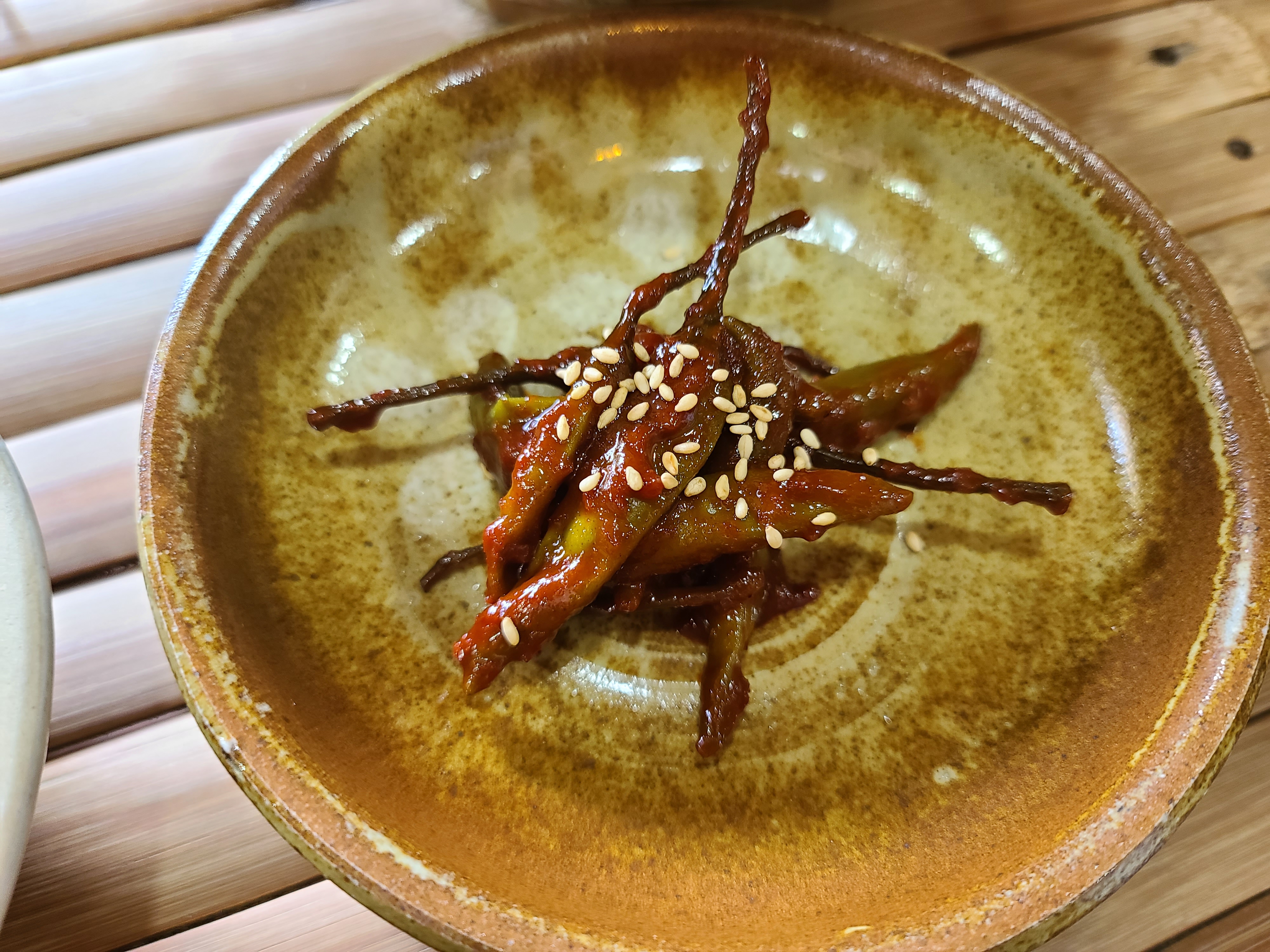 반찬은 늘 2가지가 나오는데요. 맛이 괜찮아 리필을 할때가 있어요.