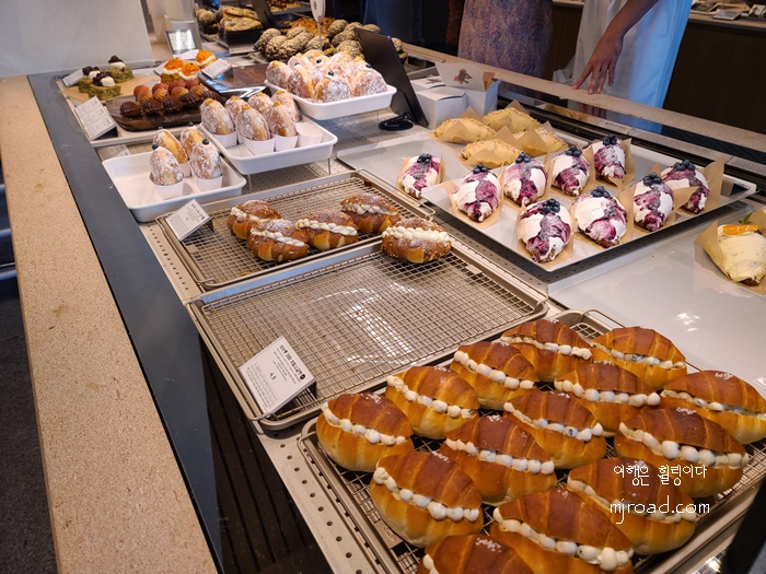평소 우리가자주 보던 그런 빵들이 아닌 새로운 디저트들이 가득 있더라고요. 가격대는 조금 비싼 편이었는데 크기도 제법 커서 대부분 한 개로 나눠 먹는 분위기였답니다.