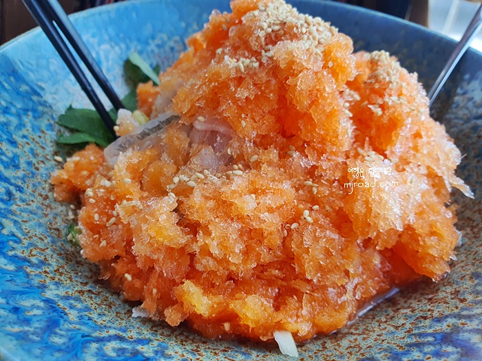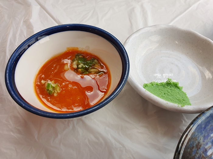 회를 주문하지 않았는데 왠 와사비와 초장이 나오지? 하겠지만 회가 조금 서비스로 나온다는 장점이 이곳에선 있다.