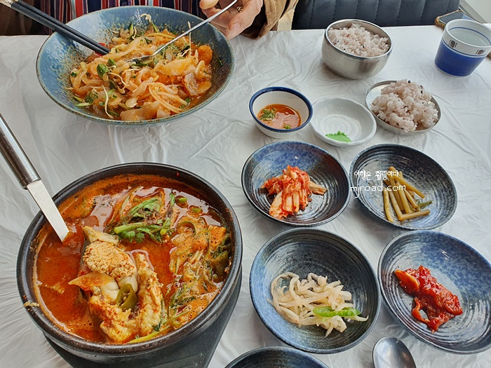 점심시간에 가면 웨이팅은 기본이니 11시쯤 가거나 점심시간 피해서 가는 것을 권한다. 우린 도다리매운탕과 물회를 주문했다. 가격은 각각 10,000원씩이다. 반찬은 특별한 것은 없지만 주메뉴가 맛있으니 사실상 다른 반찬은 크게 먹지는 않게 된다.