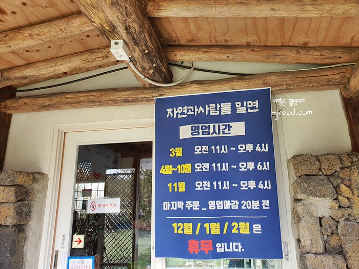 이곳의 휴무는 12월~ 2월까지다. 그래서인지 3월 ~ 11월까지는 따로 휴무가 없어서 식사를 하러 가기가 부담스럽지 않다. 특히 제주도를 여행하는 분들이라면 편하게 언제 어느때 갈 수 있어 좋다.