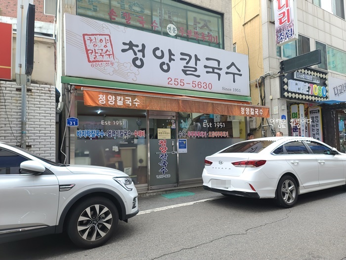 예전에 바로 옆 가게 광천식당에서 두부 두루치기를 먹었었다. 웨이팅이 장난이 아니었던 기억이 새록새록 나는데 여전히 손님이 많았던 탓에 엉겹결에 바로 옆집인 청양 칼국수집으로 가게 되었다. 이곳도 두부 두루치기도 있고 오징어 두루치기, 수육도 있다. 물론 칼국수도 유명하다. 우리가 먹은 음식은 칼국수인데 가성비도 좋고 맛도 있다고 해서 칼국수 두그릇을 주문했다. 칼국수 가격 7,000원임.