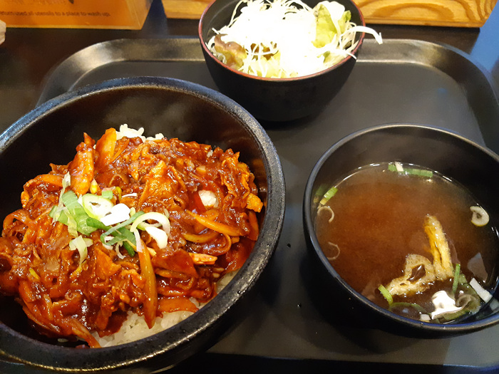고추장불백을 주문했는데 양이 생각보다 많았습니다. 장국과 샐러드와 함께 나오니 느끼함도 은근 잡아 주는 듯...