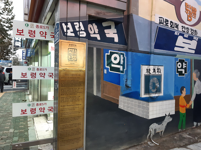 이곳은 서울미래유산으로 지정된 약국입니다. 오랜 세월만큼 사람들의 건강을 책임지는 약국이 된 셈입니다.