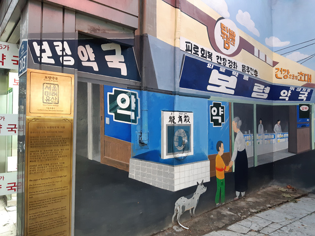 약국 옆 벽에 그림이 그려져 있네요. 마치 옛날 약국의 모습을 보는 듯 시대를 거슬러 올라간 느낌이 들었습니다.