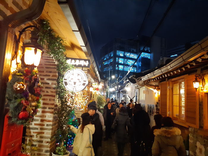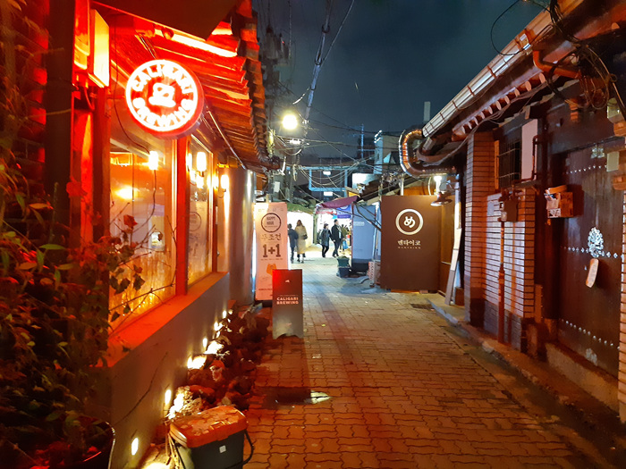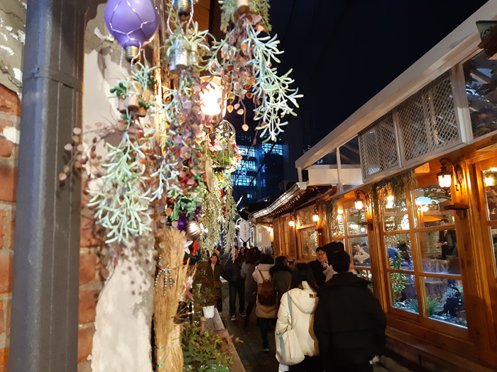 밤이면 더욱 화려해지는 익선동 골목길은 젊은이들의 데이트나 휠링 장소로 사랑을 받고 있지요.