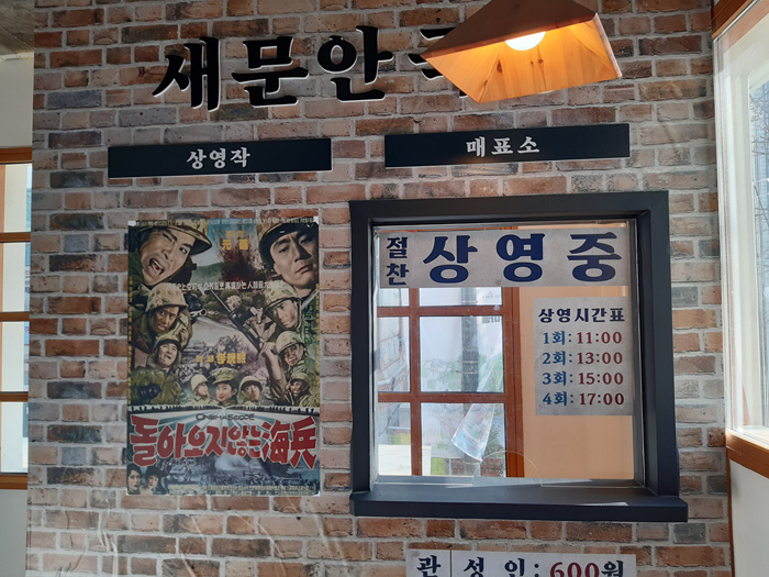 추억의 영화관도 만들어 놨네요. 성인 600원....ㅋㅋㅋㅋㅋㅋ 도대체 몇 년도? 신기합니다. 그러고 보니 요즘 영화값에 비하면 정말 많이 오른 건데..... 그만큼 돈 가치만큼 물가도 많이 오른 셈이지요.