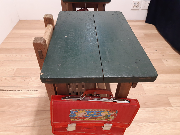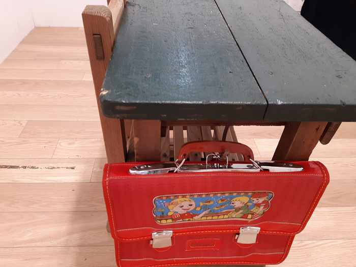 옛날 책상과 의자... 그 당시엔 이렇게 키가 작았나 할 정도로 작아 보이는 책걸상의 모습....