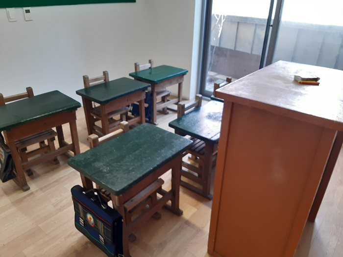 옛날 책상과 의자... 그 당시엔 이렇게 키가 작았나 할 정도로 작아 보이는 책걸상의 모습....