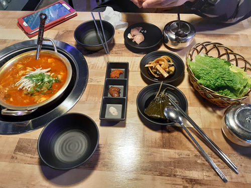 12시 ~3시에 가시면 점심특선으로 흑돼지 김치찌개를 단돈 5,000원에 드실수 있어요. 점심특선으로 주문하면 찬은 몇가지만 나옵니다. 사실 반찬이 조금 부실해 당황하지만 김치찌개를 보는 순간 반찬이 많이 필요 없어도 괜찮다라는 생각이 들게 됩니다.