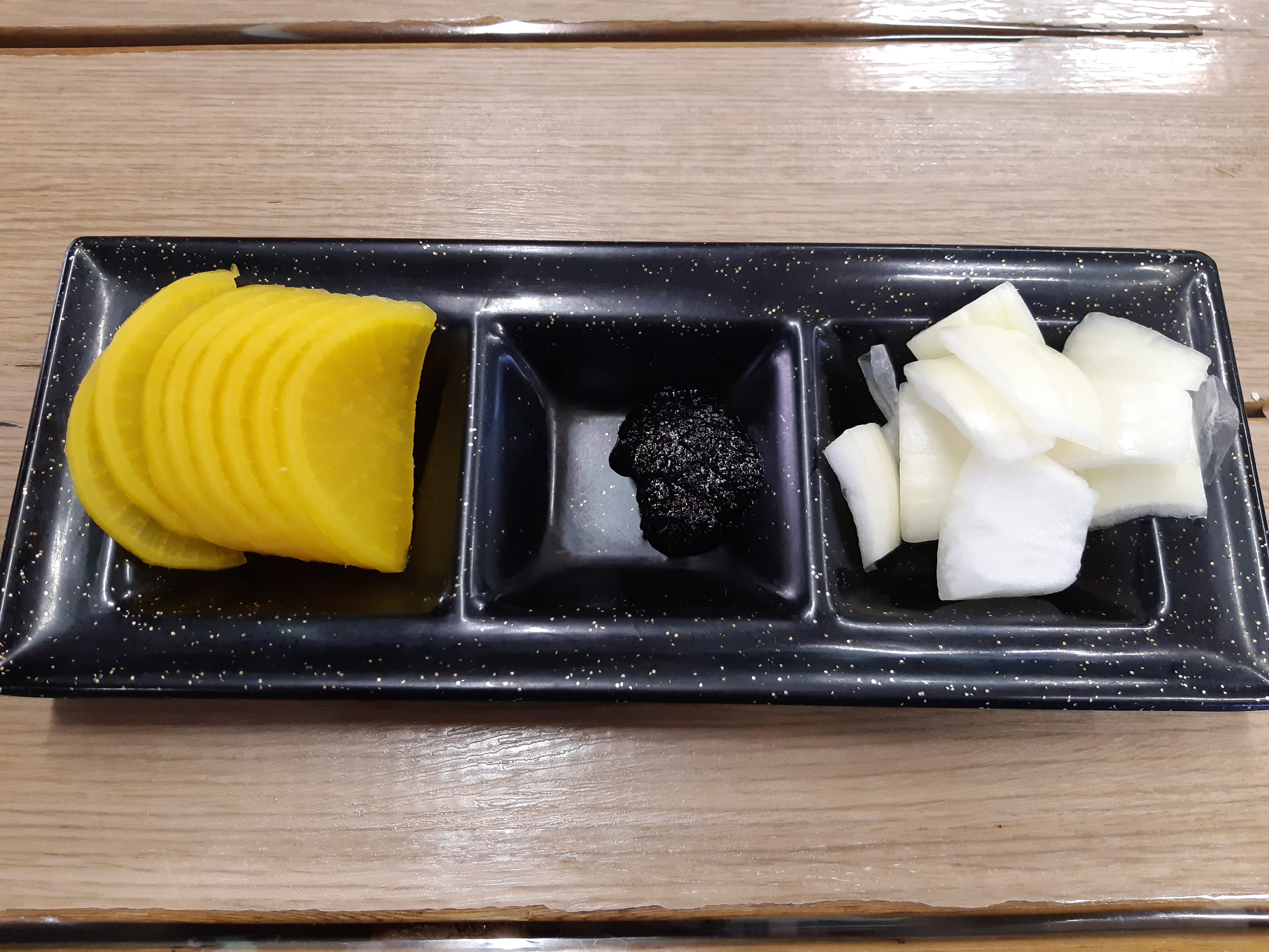 주문후에는 단무지와 양파가 바로 나왔습니다.