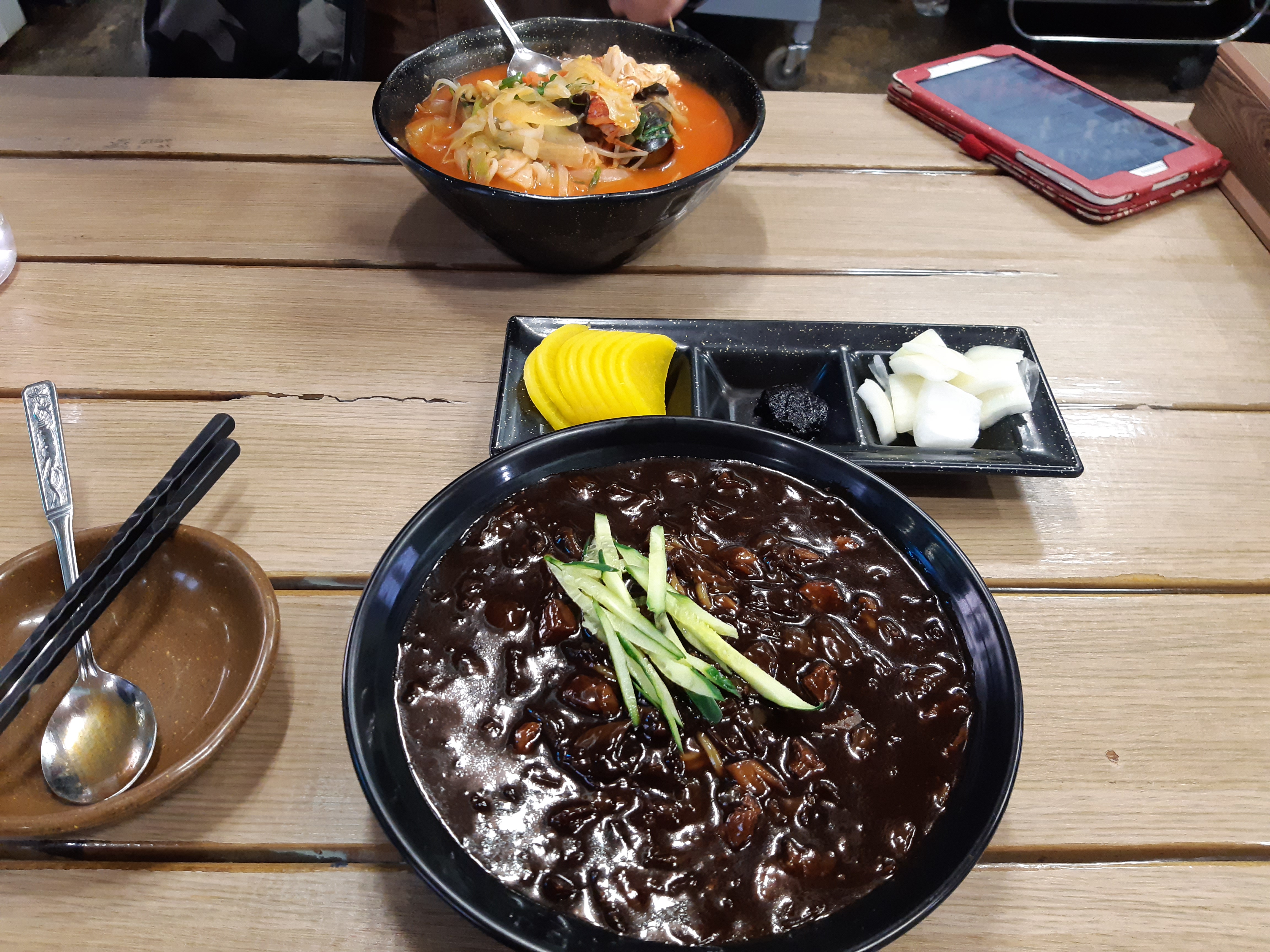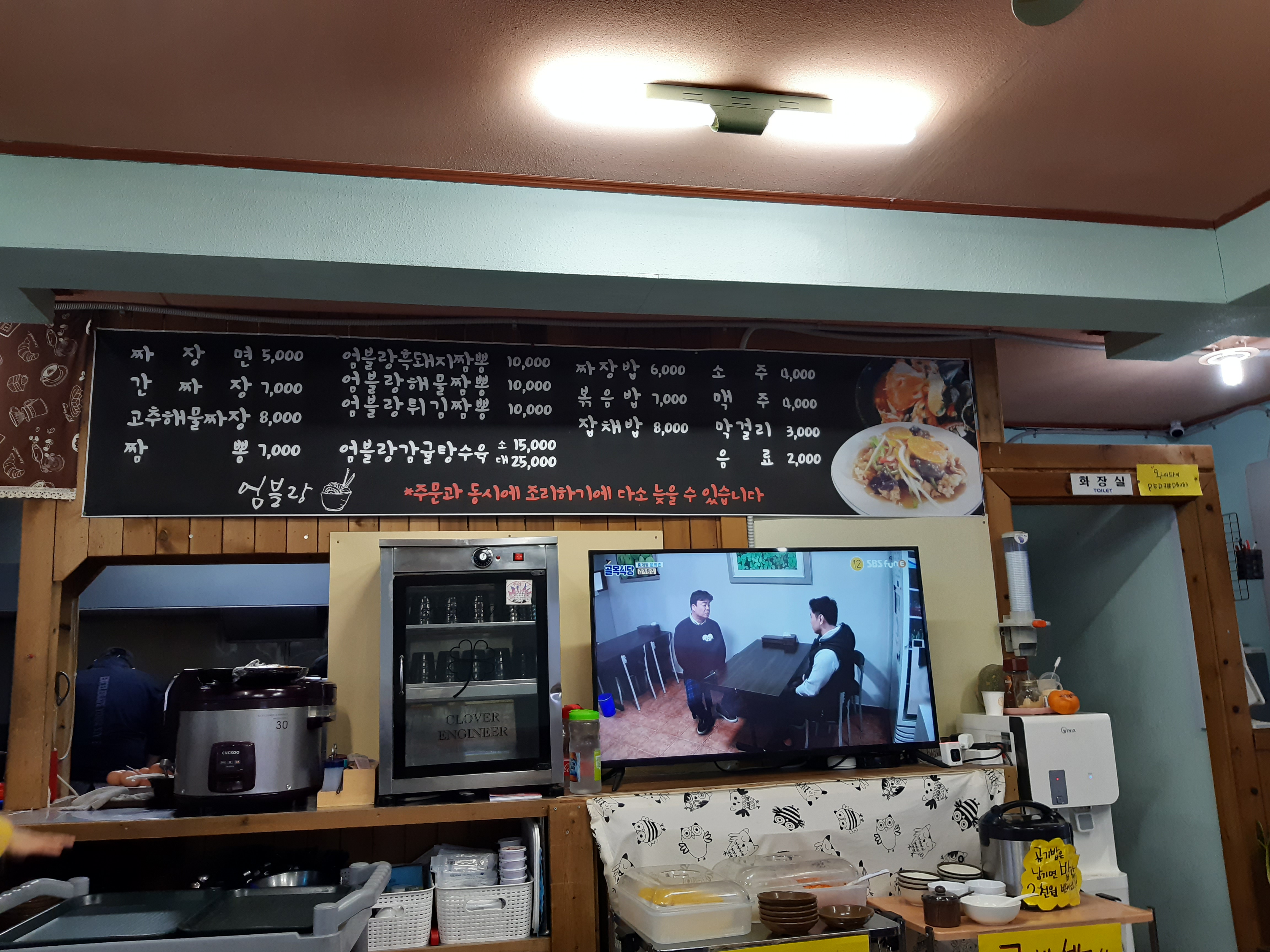 우리가 주문한 음식이 나왔는데 짜장면의 양을 보고 깜짝 놀랐습니다. 곱배기 보다 더 많이 보이는 양 때문이었죠.