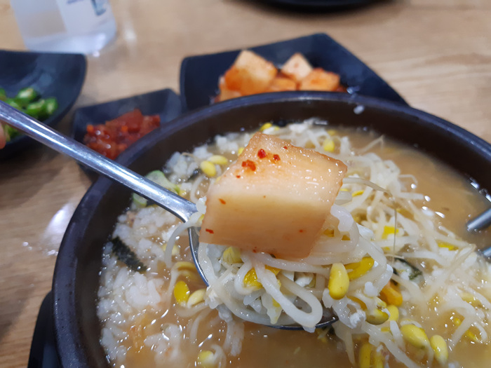 콩나물국밥 한 숟가락에 잘 익은 깍두기 하나 올리면 이만한 한끼가 없습니다. 요즘 코로나 19의 여파로 입맛도 없는데 이렇게 시원한 콩나물국밥 한 그릇 먹고 나니 힘이 솟는 것 같습니다. 힘이 들수록 우리모두 이번 바이러스도 잘 극복해 보자구요.