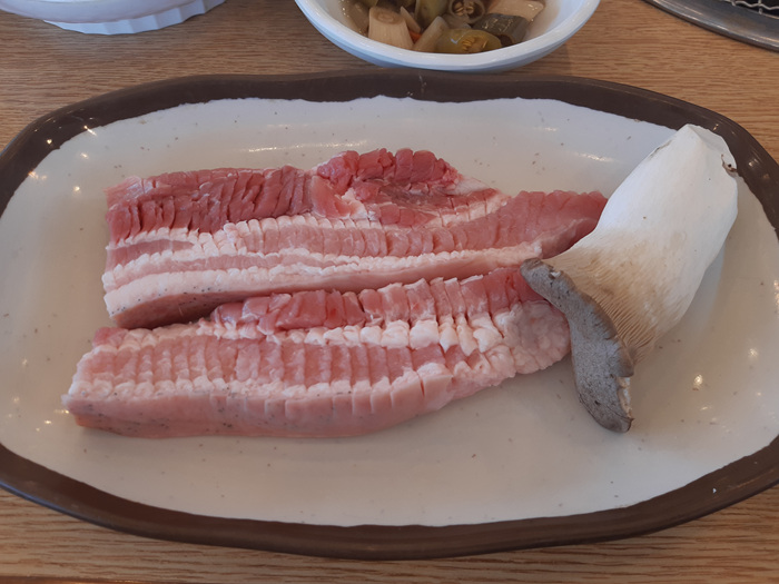 그리고 흑돼지도 나옵니다. 2인 분의 양입니다. 사실 이것만 먹는다고 가정하면 많이 부족하다고 느낄 수 있겠지만 그냥 반찬으로 먹는다 생각하고 기다리면 돌솥밥과 채소비빔밥으로 먹을 수 있는 채소 한 그릇도 나옵니다.