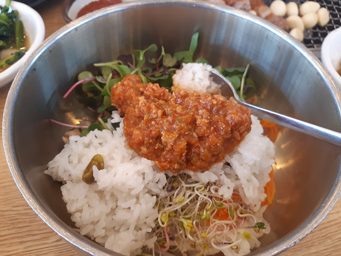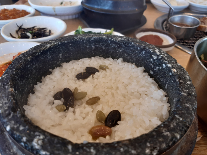 고기 한 점 올려서 돌솥밥과 함께 먹으니 이만한 든든한 한끼 식사가 없더라구요.