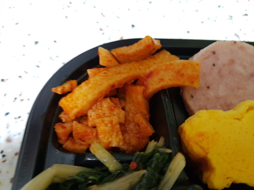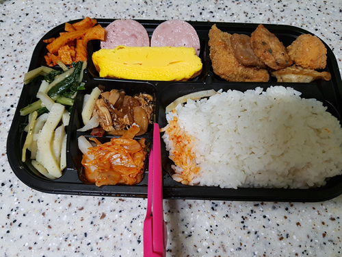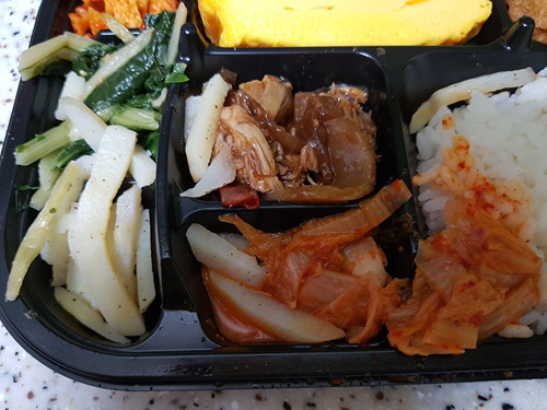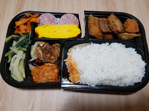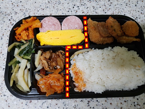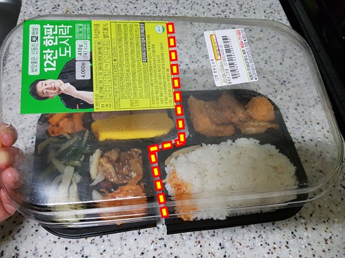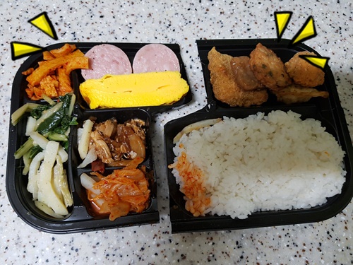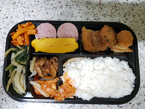다 데운 후 다시 붙이니 도시락 하나가 완성되었네요.