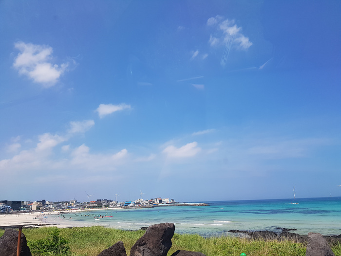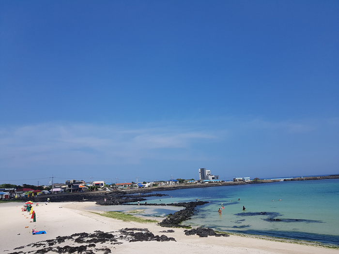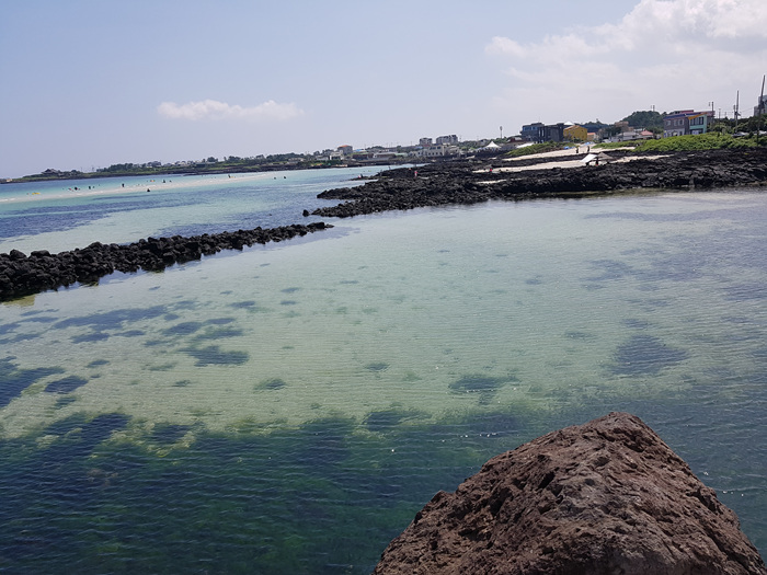 수심이 그리 깊지 않아서 바다의 색은 이렇듯 애매랄드빛을 내 뿜고 있습니다. 제주도를 처음 여행 왔을때 봤던 바다 그대로 .... 지금도 늘 한자리에서 낭만적인 풍경을 보여 주는 제주바다입니다.