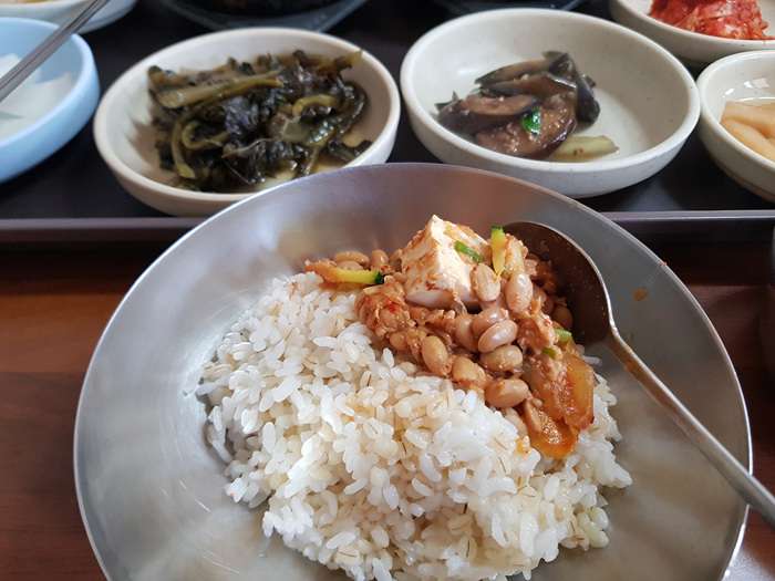 밥 양도 많이 주기때문에 다 먹고 나면 배가 든든합니다. 청국장에 쓱싹 비벼 먹으면 이만한 밥도둑이 없어요.