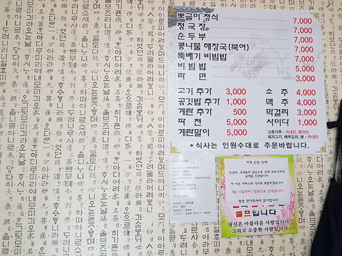 가게이름은 참 정감이 가는 '뽀글이정식'입니다. 이곳의 메뉴는 그렇게 많지 않지만 대부분 정식이나 청국장을 드시지요. 다른 메뉴도 먹고 싶지만 거의 정식을 주문하는지라 저 또한 정식을 주문했습니다.