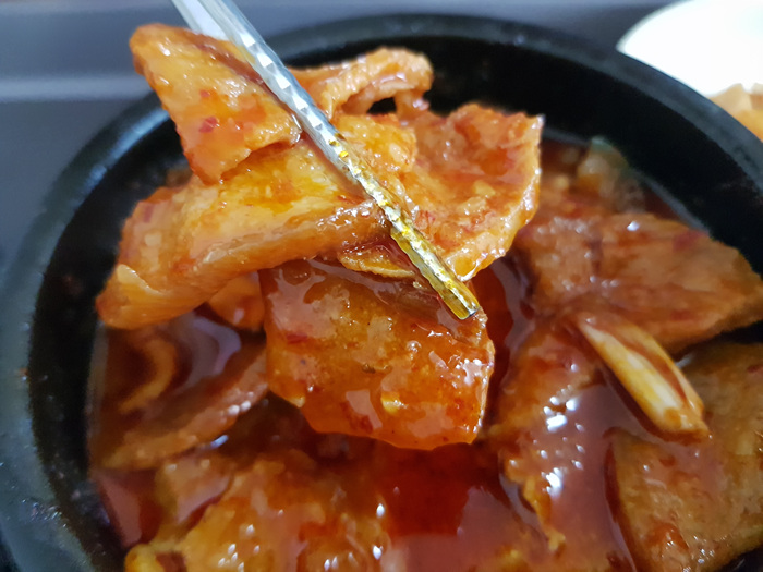 정식을 주문하면 나오는 돼지고기 정말 많이 나와요.. 아참.... 정식과 청국장은 각각 7,000원입니다. 가격도 제주도 음식점들에 비하면 착한편이예요. 불과 얼마전까지만 해도 6,000원이었는데 얼마전에 1,000원 오른 가격입니다.