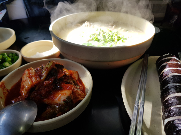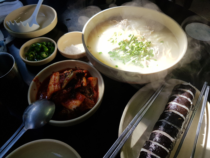 날씨도 쌀쌀해서 오늘은 따뜻한 칼국수를 먹기로 했습니다. 그것도 몸을 보해주는 닭칼국수 ~ 사실 이곳은 칼국수도 맛있지만 김치도 일품입니다. 우린 닭칼국수와 김밥을 주문했습니다.