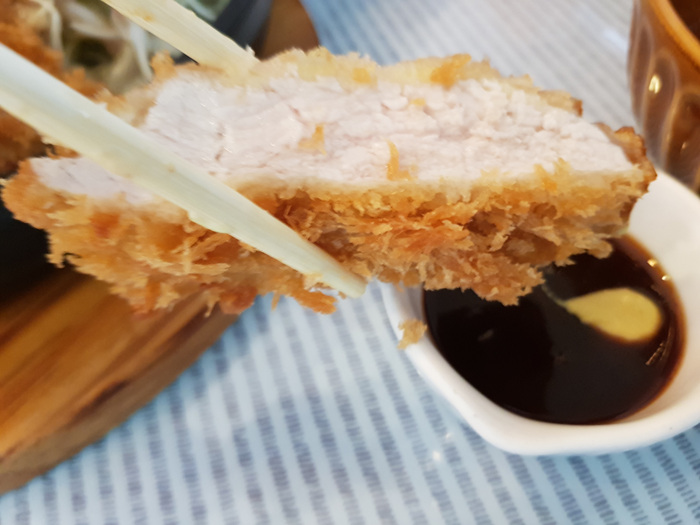 돈까스 위아래가 차이가 나는 모습.... 하여간 도톰한 고기와 부드러운 고기 질감을 만족하며 먹었다.