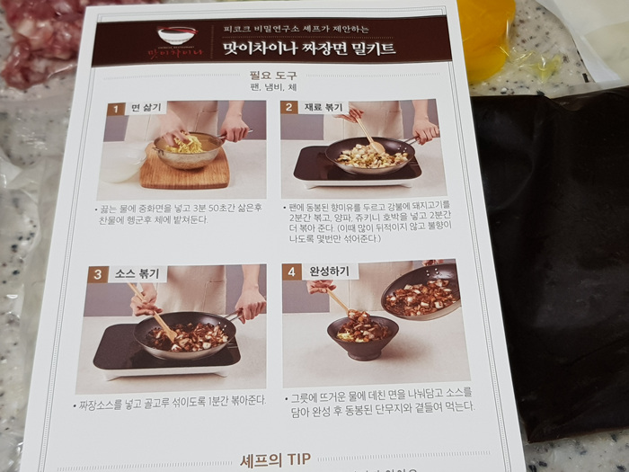적혀진 순서대로 해 보니 마치 간짜장을 만드는 것 같은 느낌도 들었습니다. 집에서도 이렇게 짜장을 만들면 되겠더라고요. 물론 춘장을 따로 구입해서 말이죠.
