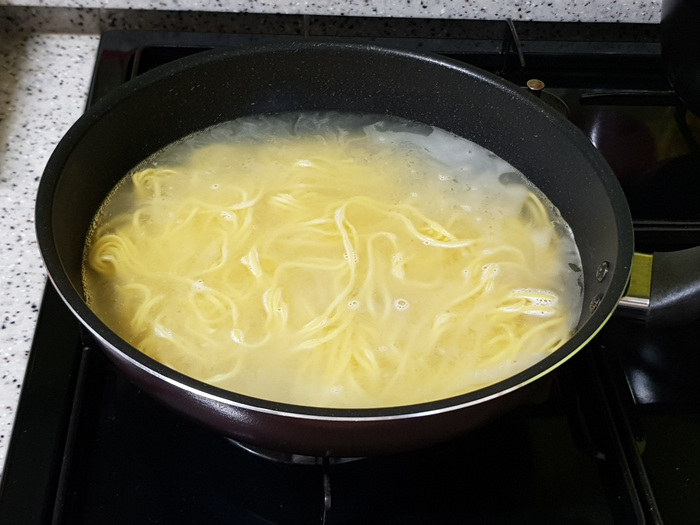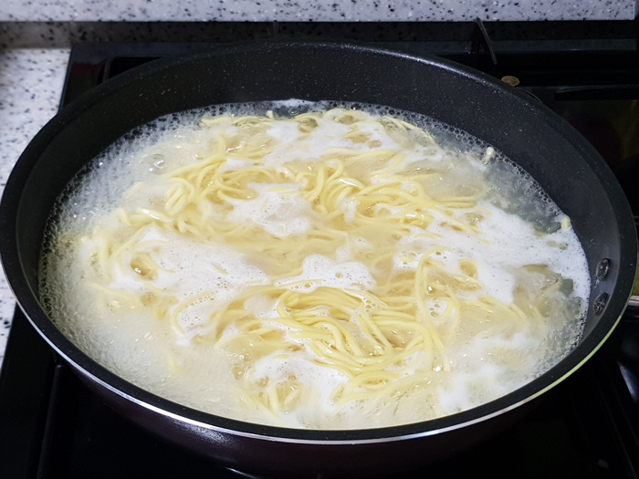 면 삶는 시간은 3분 30초~ 4분 정도면 충분합니다.