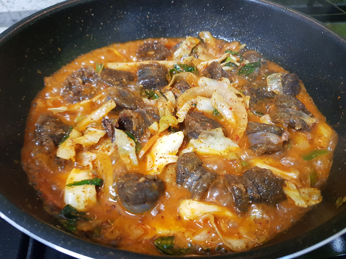 채소가 많이 들어 있어서 그런지 물이 자작하니 맛있게 조리가 되더라고요.