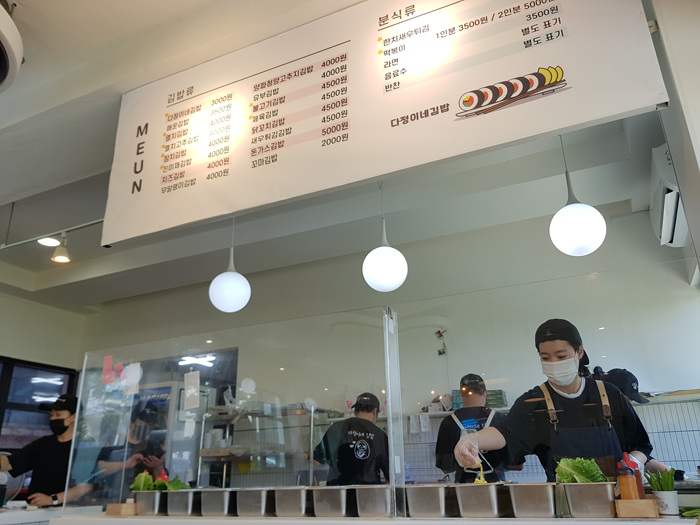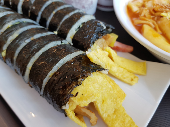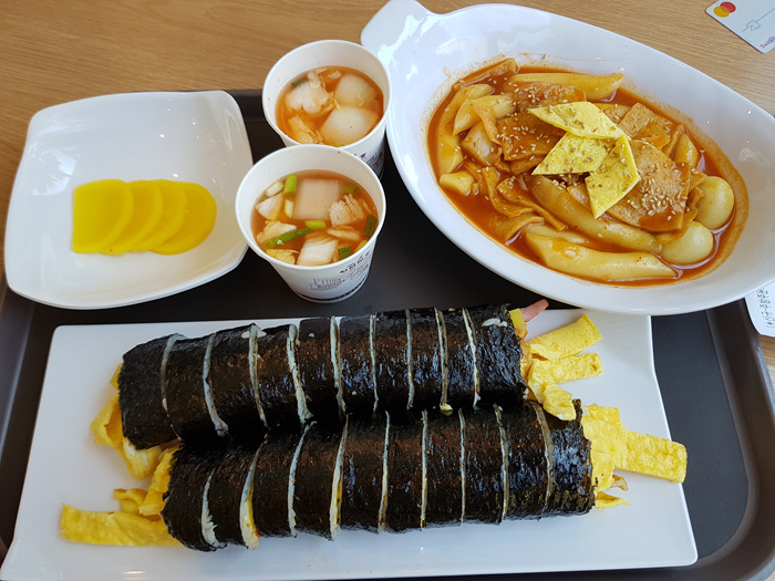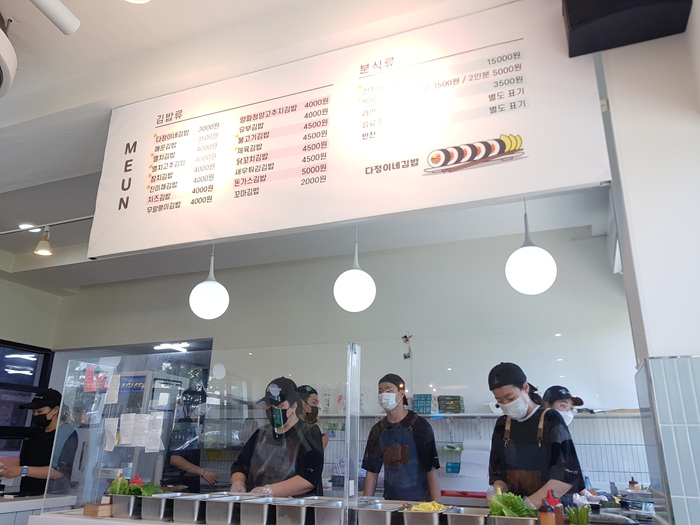 이른 아침에 가서 그런지 생각보다 많은 사람들이 없어 우린 앉아서 먹고 가기로 했습니다. 일반김밥과 멸치김밥 그리고 떡볶이를 주문했는데 10,000원 정도로 저렴하더라고요.