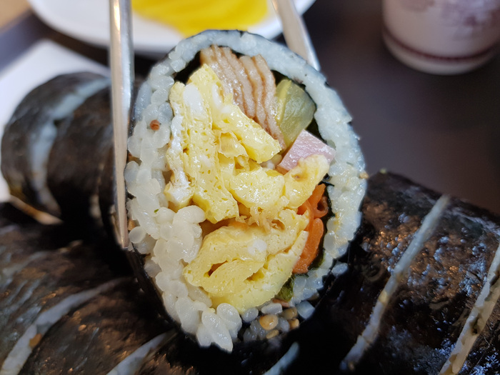 생각보다 김밥이 크고 양이 알차서 정말 놀랐습니다. 제주도 유명한 김밥집과 별 차이가 없어 보이더군요.