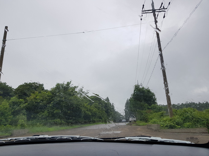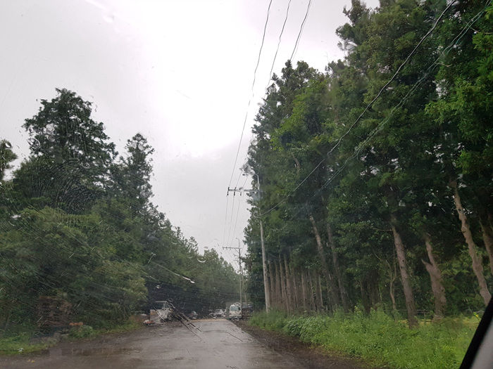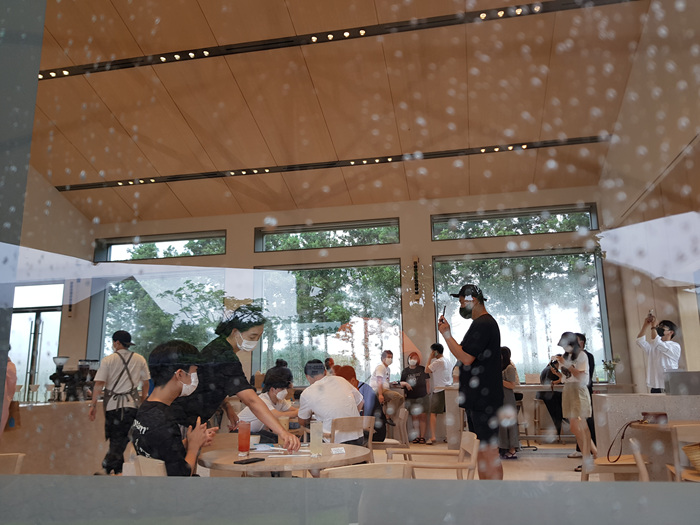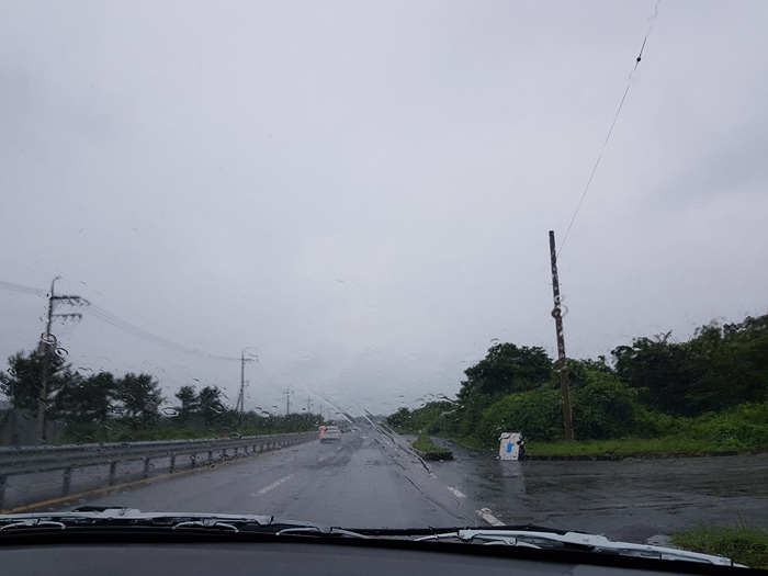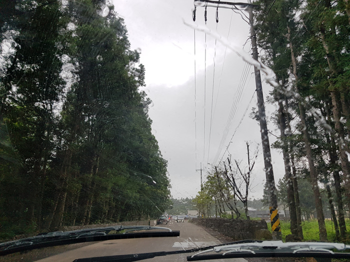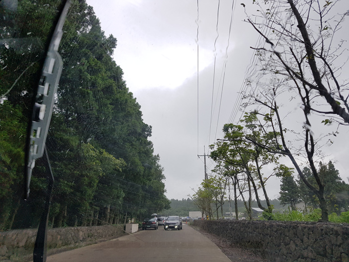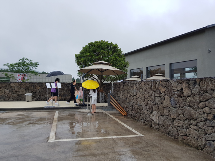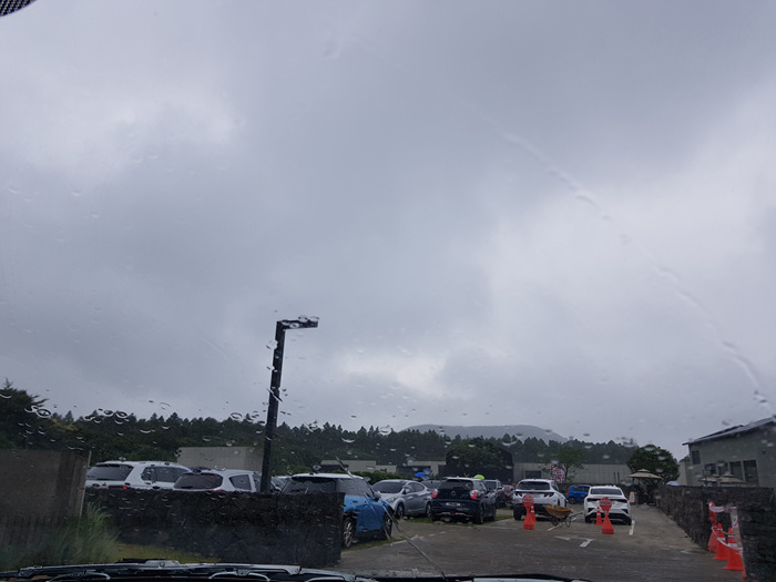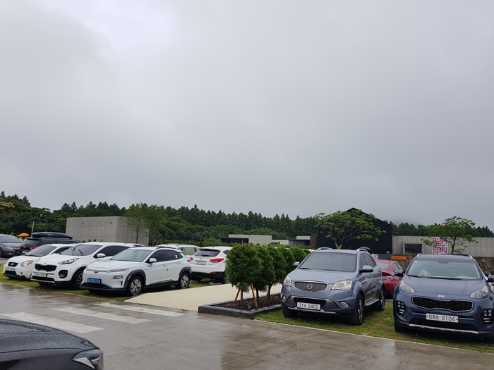 제주도는 제주시 쪽에는 햇살이 있어도 중산간 쪽은 비가 오는 경우가 많습니다. 7월 30일 블루보틀 오픈 당일도 그랬습니다. 그래도 비가 많이 와서 사람들이 별로 없을 줄 알았는데 이거 웬일...... 블루보틀 제주점 주차장에는 차들로 꽉 차 있었습니다.