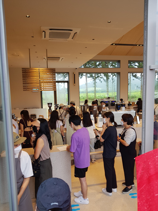 물론 내부는 이미 많은 사람들로 가득했고요....어떤 분은 새벽 4시에 와서 줄을 섰다나 어쨌다나~ 아이고..... 제주도도 블루보틀 인기 정말 장난이 아니었습니다.
