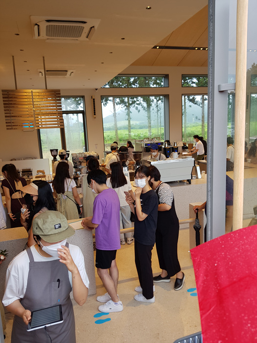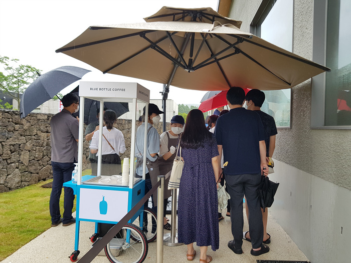 이렇게 한적한 중산간 마을인데 이게 무슨 일이래요... 정말 대단한 커피사랑이라는 생각이 들었습니다. 저 또한 커피를 너무도 사랑하는 한 사람으로 그렇게 유명한 블루보틀 커피를 안 먹어 볼 수 없잖아요. 그것도 서울까지 가서 먹는게 아니고 제가 사는 제주도에서 맛 볼 수 있다니 그저 좋을 따름이었죠. 역시나 저와 같은 생각에서인지 많은 분들이 오픈 당일 블루보틀 카페를 방문했습니다.