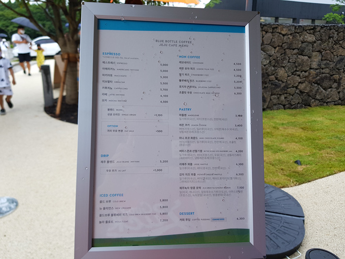 커피가격은 제주도 카페들에 비해 저렴한 편입니다. 제주도에서 조금 크고 유명하다는 카페 대부분 커피가격 장난이 아니거든요. 물론 관광객들도 작은 카페들 보다는 뷰도 있고 대형 카페를 찾다 보니 자연스럽게 가격이 올랐을수도 있지만 .... 하여간 여기 카페는 가격이 나름 저렴한 편이라는 생각이 들 정도였습니다.